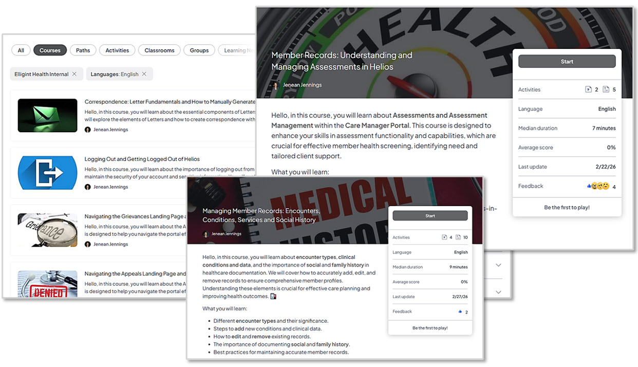 At the center of the new experience is a growing library of step-by-step “How To” courses that guide users through key functionality across the platform. Courses combine concept screens with audio-guided tutorial videos that walk users through processes in a practical, easy-to-follow format. The LMS is designed for flexibility, allowing users to pause training and resume where they left off when it’s convenient. From managing member records and assessments to navigating core workflows, the LMS is designed to help users build both confidence and capability within Helios.